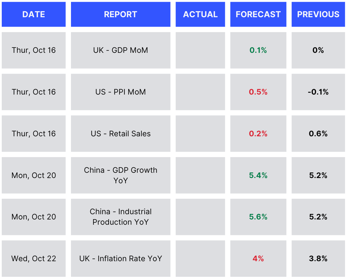 Data-wise, tomorrow UK GDP is expected to grow by 0.1% compared with the flat latest print, while US PPI is expected to surge by 0.5% (vs. the 0.1% decline last month), and US retail sales are expected to grow at a softer pace (0.2% vs. 0.6% last month). Next week, the market expects positive data from China, with GDP expected to increase by 0.2% year-on-year compared to the latest print (5.4% vs. 5.2%) and industrial production by 0.3% from the previous print (5.6% vs. 5.2%). In comparison, UK inflation is expected to surprise to the upside (4% year-on-year vs. the 3.8% previously).
