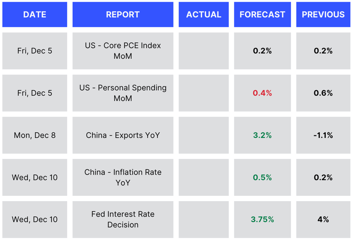 Risk assets are holding up better as the bond market is now pricing a rate cut next week from the Fed. Crypto continues to lag, with most crypto-related stocks struggling as well. Data-wise, Indiaโs GDP grew stronger than expected, while European inflation was softer than anticipated. On the geopolitical front, the US has opened a conflict with Venezuela, while peace talks between Russia and Ukraine remain at the centre of the conflict.
