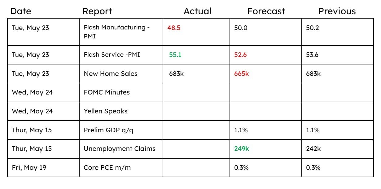 Markets are super focused right now on the debt ceiling and inflation data, given the June hike could still be on the table. If there is a big miss in the data, then you would expect the USD to weaken on expectations that the Fed will need to be less aggressive in hiking rates. You would typically expect that to weaken US 10-year yields and strengthen gold.