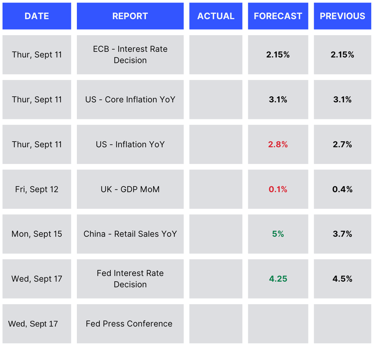 The main data released last week were non-farm payrolls, which came out softer than expected, and US unemployment, which ticked up by 0.1%. This indicated a weakening labour market, increasing market confidence in a rate cut, and supporting risk assets overall.