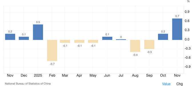 On the positive side, inflation rose to 0.7% year-on-year in November, matching the 0.6% expectation and outperforming the 0.2% recorded in October. This is the 2nd consecutive month in which inflation has risen, driven mainly by food and energy. China’s official NBS Manufacturing PMI rose to 50.1, beating both last month’s reading and the forecast of 49.2. This marks the first growth in factory activity since March and an increase in new orders that hasn’t happened since June.