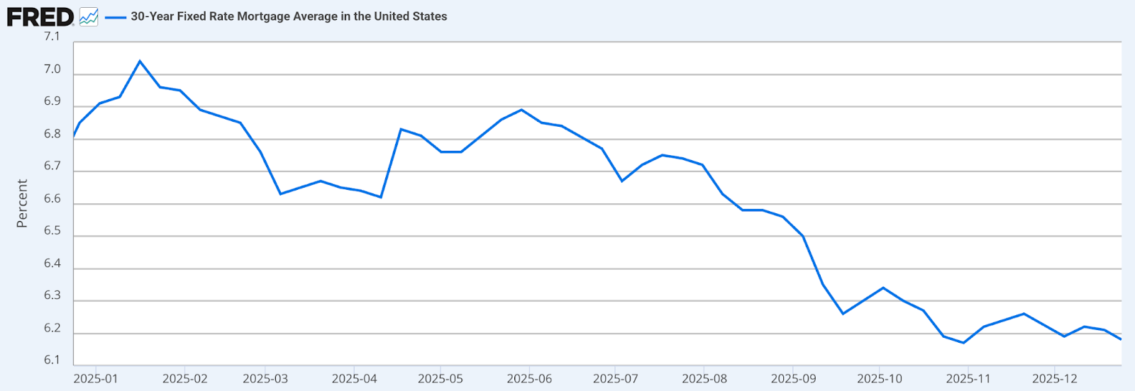 Mortgage rates continued to trend lower, with the 30-year yield down 8 bps and the 15-year fixed mortgage down 7 bps. The 30-year fixed-rate mortgage is at its lowest level since September 2024.