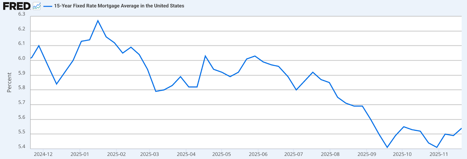 Mortgage rates ticked up this month, reflecting Powell's hawkish comments and uncertainty ahead of the Dec meeting. The 15-year rate rose by 15 bps, while the 20-year rate rose by 10 bps for the month.