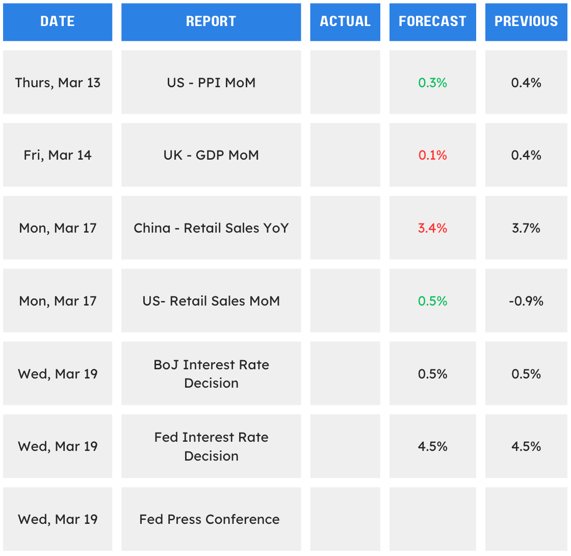 Monday saw one of the biggest sell-offs for risk assets as trade wars intensified and the Fed paused its rate-cut cycle. Crypto continues to underperform despite the news of the strategic reserve. This week's main event is US Inflation data coming out today, which is expected to print softer than last month. Next week, the main events are BoJ and Fed interest rate decisions on Wednesday. These are expected to keep the rate constant. As always, the FOMC projections and Fed press conference will be very telling for the rate path in the future.