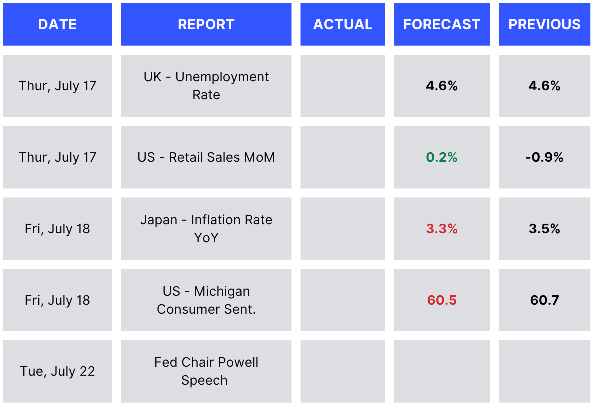 Data-wise, the week is expected to be very uneventful, with UK unemployment forecast to remain constant and US retail sales anticipated to rebound into positive year-on-year growth. On Tuesday, we have Powell’s speech, which should be interesting, given the pressure from Trump on the Fed to resume rate cuts.